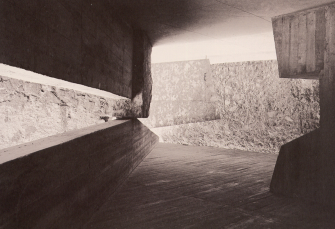La construcción de un vestíbulo semienterrado de hormigón donde se aprovechan los muros existentes, tanto el de la base del tanque como el de división de parcelas siendo el pavimento una suave rampa que nos lleva a la rampa de acceso deprimida que se encuentra bajo el tanque.
