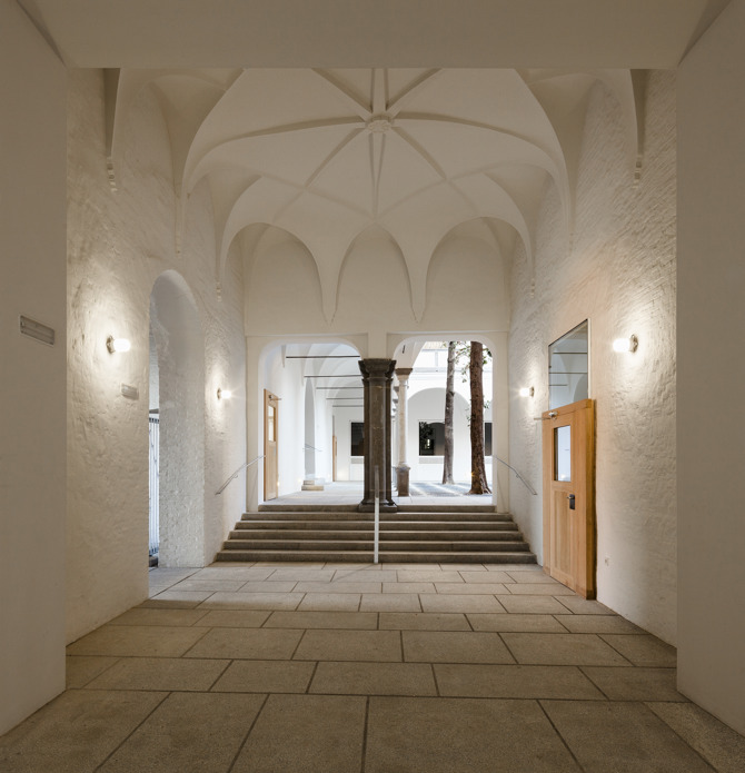 El complejo contaba con la estructura adecuada para acoger la nueva escuela, si bien exigía una intervención clarificadora para alcanzar una unidad, no en sentido estilístico, sino integrador. En este complejo, junto a elementos que tienen sus valores arquitectónicos propios, hay otros que carecían de ellos. Nuestra actuación ha pretendido precisamente que la tensión que surge entre lo auténtico del pasado y lo nuevo del presente impregne al resto, de modo que encuentre al fin un destino arquitectónico. La construcción sería en esta nueva etapa el agente catalizador de un nuevo “todo” reconociendo en la materialidad de cada época y la luz el fundamento integrador del proceso histórico.