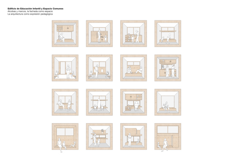 El urbanismo como expresión pedagógica. La escuela propone una expresión espacial contemporánea de la pedagogía Waldorf-Steiner adaptada a un clima mediterráneo. Así, no hay pasillos interiores, y el acceso al aula sigue una secuencia espacial gradual: rambla-patio-porche-recibidor-aula. Los horizontes –las visuales– se amplían a medida que el niño crece, y la rotación relativa de las aulas sobre la topografía les proporciona intensidades y colores de luz cambiantes. Secuencias, horizontes y luz personalizan cada aula, enfatizando y acompañando la experiencia del crecimiento.