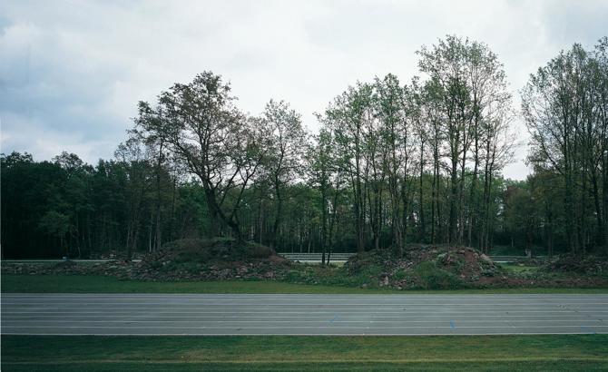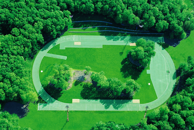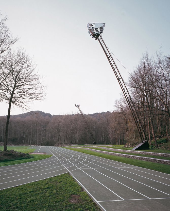 Emplazada en un entorno natural, esta pista de atletismo permite enfatizar los valores paisajísticos existentes y acercar las carreras atléticas a la naturaleza. La pista se implanta en un claro de bosque de roble albar. Bosque contiguo, bosque a distancia y bosque alejado son las relaciones que se establecen entre la pista y el bosque, potenciando las gradas como bancales pequeños o como taludes entre claros.