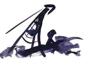 Puerta que es una gran cubierta suspendida por dos muros ortogonales, en uno de los cuales se apoya un cerramiento de cristal para no romper la continuidad visual, o para recoger el reflejo de un bosque que ha determinado toda la actuación.