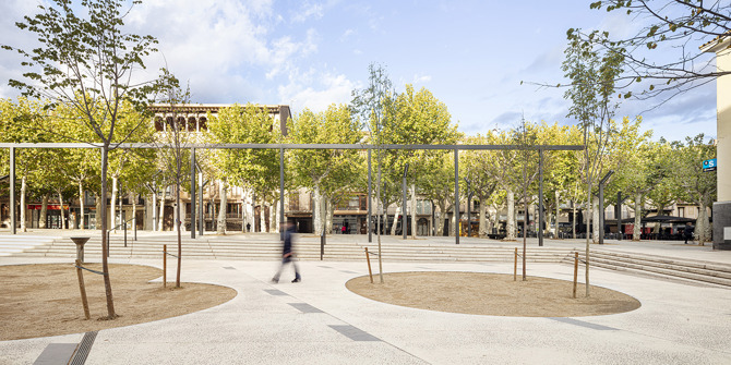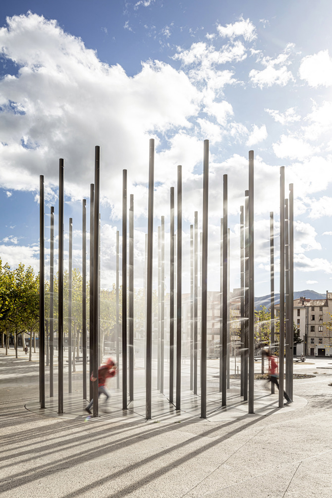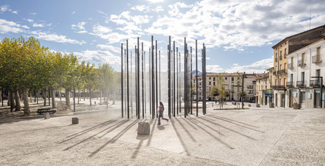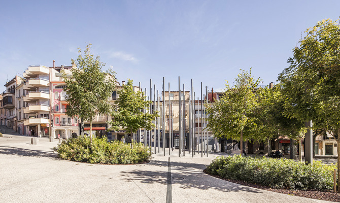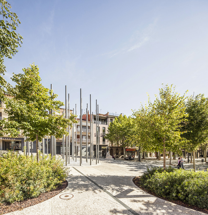 Al remarcar la geometría de estos dos paseos, el espacio intersticial se resuelve con un simple movimiento topográfico, permitiendo ganar una nueva plaza en la ciudad, que cose los dos paseos a la vez que resuelve el complejo programa funcional que requería el Ayuntamiento. Este nuevo espacio central entre el Firal y el Firalet permite una multiplicidad de usos gracias a su carácter abierto, resuelve el desnivel topográfico eliminando barreras arquitectónicas y aloja espacios como los juegos infantiles, el escenario o la plaza abierta para eventos de todo tipo.