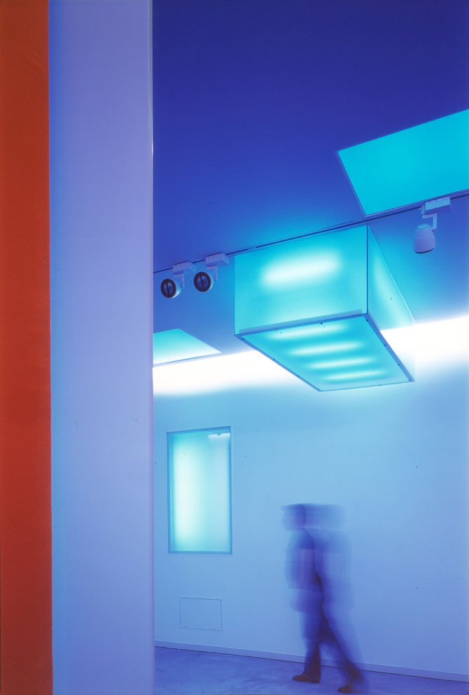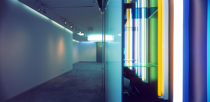 “Espacio neutro-vacío (exposición) donde se acoplan sobre los fondos y el techo. Elementos propios-mínimos (programa)”.