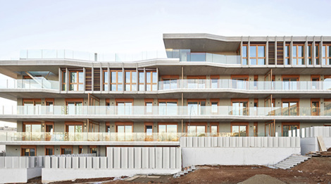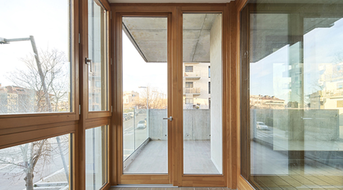 El proyecto se plantea desde la idea de proponer unos pisos con unos espacios de transición –balcones, terrazas y galerías– capaces de dotar a los usuarios de sitios intermedios entre el interior y el exterior de la vivienda. El edificio se desarrolla como un volumen escalonado compacto que se adapta a la topografía de la calle.