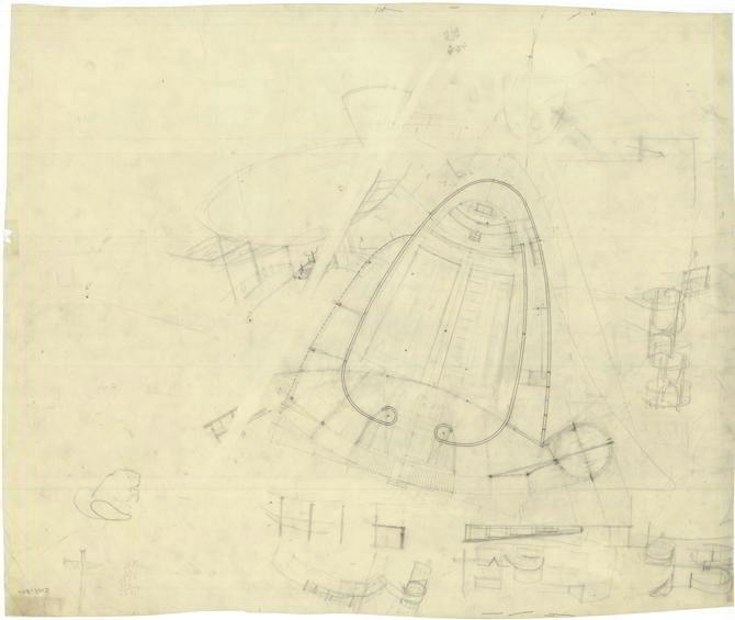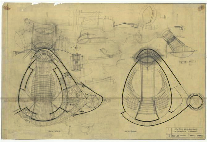 El centro parroquial adapta su programa a una parcela triangular, combinando en su planta dos ejes; el primero viene definido por la geometría del óvalo en la iglesia con un eje principal este-oeste; el altar, que se eleva media planta para colocar la capilla-sagrario debajo, visible desde la nave y los accesos; el eje secundario, perpendicular al primero, define el tercer vértice (baptisterio) de planta circular.