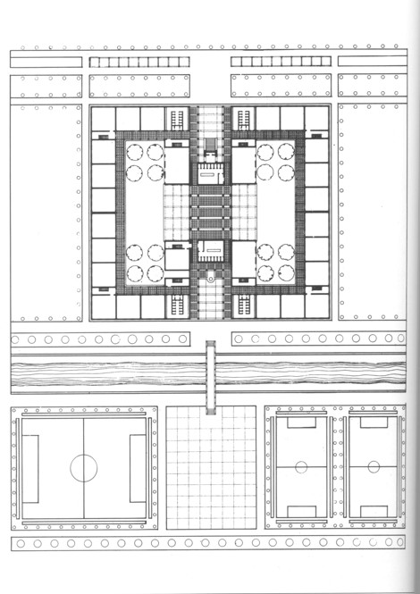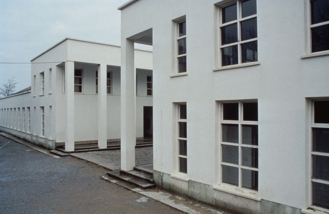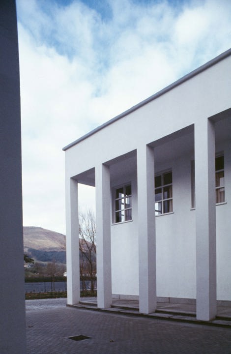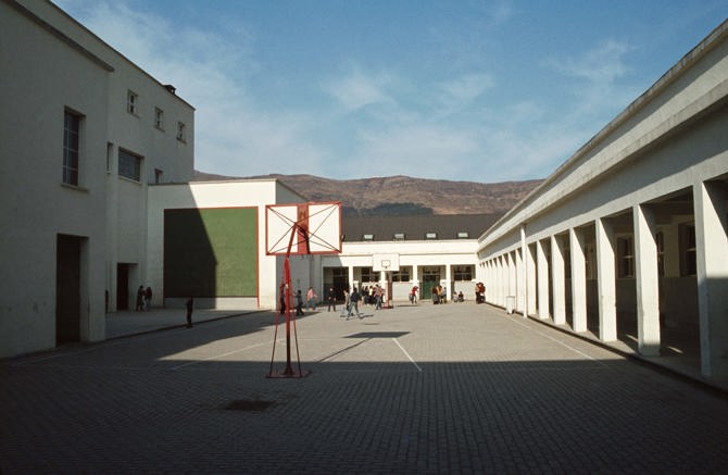 Se trata de un edificio urbano, aunque instalado en un paisaje, a la manera del Centro Dalcloze o la escuela de Klotzsche de H. Tessenow, fragmentado en distintos volúmenes que acogen aulas y espacios comunes, entre los que destaca el gimnasio. Existe una gran permeabilidad de recorridos entre los dos patios y la planta baja del cuerpo central, lo cual le proporciona un carácter de edificio urbano al que aludíamos. Esta permeabilidad se desarrolla en el interior del edificio, sólo abierto al exterior por una calle que lo atraviesa.