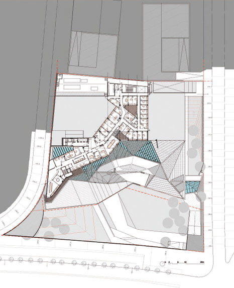 El pliego de condiciones de la OMI, articulado esencialmente (como en casos similares) en plantas para quirófanos, cirugías y áreas de administración o estudio y aparcamientos, era significativo en cuanto a que la mayoría de las actividades se realizan sin luz natural (cirugías y operaciones), aunque la luz natural es muy necesaria como contrapunto en las áreas de espera, descanso y trabajo privado.