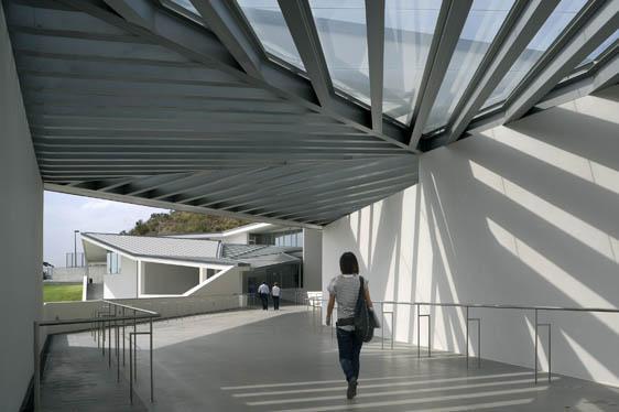 A partir de estas consideraciones, la idea del edificio se expresa en la sección: gran parte del edificio se empotra en el suelo y solo emerge para dar la cara a la entrada, las salas de espera, las zonas de administración, los despachos y la biblioteca fuera del alcance de los pacientes hacia la ciudad (con extraordinarias vistas sobre Barcelona y el mar). El edificio da la espalda a la Ronda de Dalt y se adentra en un pequeño jardín ligado a la vegetación de Collserola que aleja el edificio de la ciudad y lo sumerge en el entorno natural que lo rodea.
