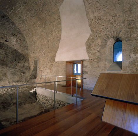 También se ha construido en la casa del abad un centro de reuniones y una pequeña residencia para albergar actividades que potencien la visita y el uso del conjunto. Nuestra primera visita al monasterio coincidió con un día en que las nubes volaban bajas y cruzaban la torre del campanario a través de las ventanas. Quizás era aquella visión enigmática y fantasmagórica lo que deseábamos conservar.