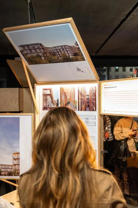 La presente exposición resume lo mejor del esfuerzo gremial de tantos equipos de arquitectos y arquitectas por enriquecer los escenarios de nuestra vida íntima o compartida. Esto es aquí motivo de celebración y también debe servir de estímulo, desde ya y en un futuro a Me—dio Pla—zo.