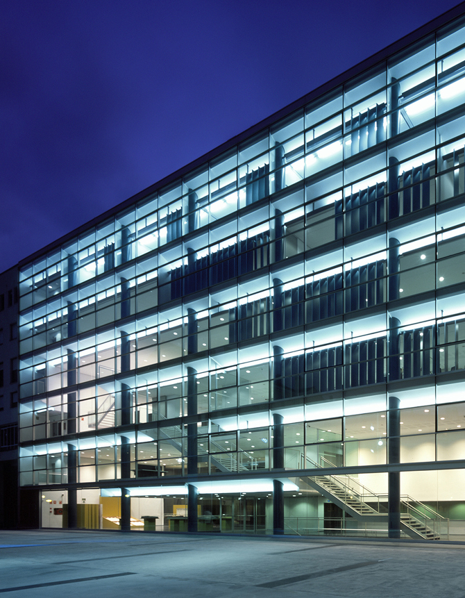 La diversidad de funciones que tiene que englobar el edificio en las plantas sobre rasante obliga necesariamente a plantearse seriamente el problema de la flexibilidad, para poder asumir cambios temporales sin trastornos graves. Por ello la totalidad de las plantas sobre rasante se plantean bajo un estricto modulaje, en coincidencia con los elementos estructurales. Bajo rasante se ubica un teatro-auditorio con todos sus servicios.