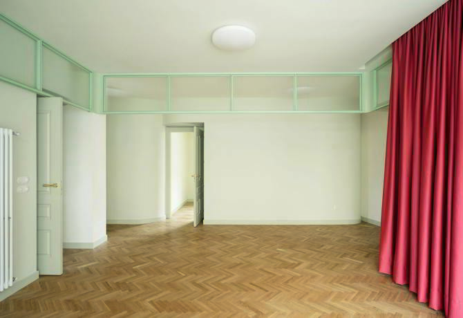 Debemos tener en cuenta que la mayoría de estas transformaciones se plantean en locales crudos, nunca utilizados y de definición anodina. Seguramente trabajaremos sobre espacios en los que no haya componentes constructivos de valor que rescatar más allá del propio espacio. En el prototipo, las formas redondas, la minimización de los cantos vivos, el uso del color dan como resultado una estética envolvente, fuera de un abanico de estilo temporal concreto, algo ambiguo que quiere superar la inercia de la inhóspita planta baja anterior. La definición estética funciona tanto para la domesticidad íntima como para la revitalización de la calle. El color es una importante herramienta utilizada para la integración de las nuevas viviendas en su contexto en términos de armonía con las preexistencias. El proyecto es un manifiesto sobre el valor de la definición estética como medida saludable, entendiendo “saludable” en su vertiente positiva, como estado físico y psíquico definible con el ambiguo pero contundente “sentirse bien”. Una contribución positiva al desarrollo emocional de los residentes. Se trata de inyectar el máximo optimismo a los usuarios y como eco, a los vecinos y paseantes.