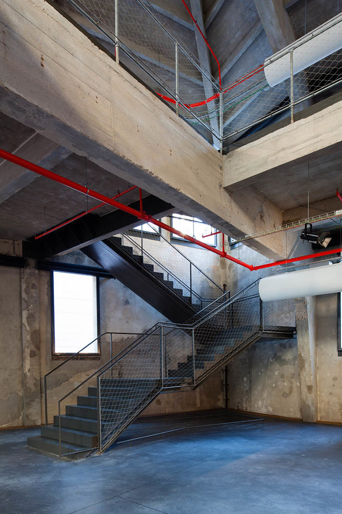 La Serrería vs La Cosa es otro formato de coexistencia que, a modo de combate dialéctico, ha permitido habitar más allá del concepto convencional de rehabilitación el espacio intermedio que quedaba entre ambos contrincantes. La Serrería Belga fue construida en varias fases desde los años 20 del siglo pasado por el arquitecto Manuel Álvarez Naya y es una de las primeras arquitecturas madrileñas en las que se empleaba el hormigón armado. La Cosa, por su parte, es el nombre que nos ha facilitado referirnos a ese conjunto de dispositivos, instalaciones y comunicaciones que agrupados permiten actualizar el edificio a los requerimientos actuales. Un ente ligero y articulado, con un cierto aire pretecnológico, que infiltrado en el edificio permite una amplia capacidad de transformación. En definitiva, una coexistencia de contrarios que ha permitido pensar la región intermedia entre interlocutores no como un producto consumado sino como un proceso abierto, versátil y activado por los usuarios.