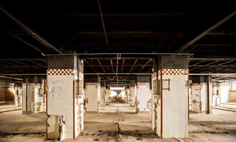 Pantallas perimetrales de H.A.; Cimentación y forjados de H.A.; Estructura roblonada de pilares de fundición y cerchas de cubierta y pilares de acero en las dos plantas de sótano. Crantos originales con carpintería y celosías de aluminio.