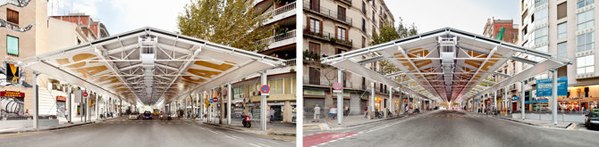 Las obras de reforma del Mercat de Sant Antoni han obligado a trasladar la actividad comercial del mercado dominical. Con el fin de resguardar la actividad de los comerciantes se plantea cubrir el ámbito central de la Calle Urgell, que se corta al tránsito rodado durante todos los domingos del año y mantiene intacto su papel circulatorio durante el resto de días de la semana.