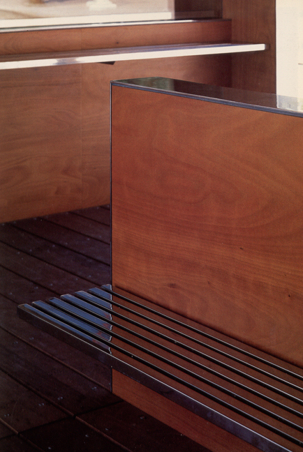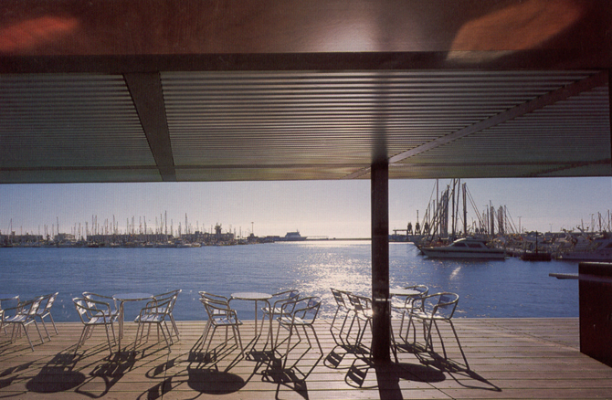 El concurso consistía en el diseño de un muelle para el desembarque de viajeros de cercanías y, sobre él, una edificación que albergase un quiosco y sombra de espera. Una oportunidad espléndida para explorar los dos extremos de la construcción más ligada a la mar: la ejecución del dique y su plataforma con técnicas de ingeniería civil y la de una pequeña construcción realizada con la calidad material, el ajuste y la precisión propias de la mejor arquitectura naval.