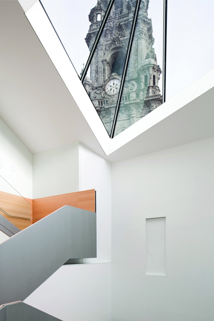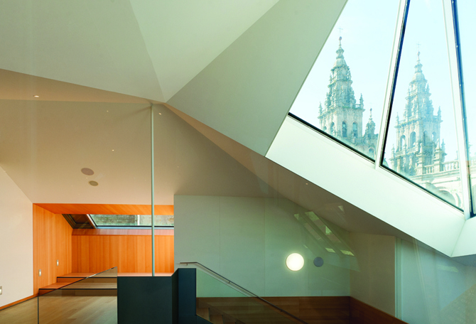 Asimismo, la necesidad de reducir al máximo el tránsito de vehículos por el recinto histórico obligó a reducir al límite el uso de hormigón, utilizando en su lugar acero laminado para construir una estructura, realizada por grandes piezas producidas en taller y ensambladas in situ. La estrategia del nuevo edificio propone, de alguna manera, la continuación del Camino de Santiago, que culmina en un mirador desde el que se contempla la Torre del Reloj de la catedral, expuesta en su interior desde la primera planta. El sistema constructivo y la protección posterior fueron muy importantes para lograr la expresión estética final.