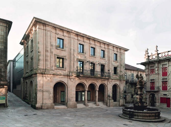 Situado en el centro de la histórica y monumental ciudad de Santiago de Compostela, a los pies de la Torre del Reloj de la catedral, el edificio historicista del “Banco de España” fue construido durante la Guerra Civil española y se finalizó en 1948. Un concurso público propuso su regeneración para convertirse en una ampliación del espacio expuesto del Museo de Peregrinos, que ya existe. Era un requisito expreso conservar el edificio actual. Dada la insuficiente superficie para acoger todo el programa, se proyectó como un espacio expositivo con los mínimos espacios de apoyo (cafetería, zona de talleres y una sala de conferencias) funcionando como una ampliación del actual museo. Independientemente de su calidad arquitectónica, el edificio original es respetado por su integración urbana en la parte fundamental del Conjunto Histórico-Artístico que es la ciudad de Santiago.