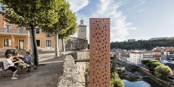 El encargo consiste en la inserción de un nuevo acceso al casco antiguo desde el cauce del río para potenciar la conectividad urbana entre las dos partes. El nuevo acceso se integra en la memoria histórica del lugar, como una capa más del paisaje. Se propone la ubicación del ascensor en un punto estratégico del camino de Cal Metre, por donde antiguamente se accedía a las colonias textiles. Esta ubicación potencia la futura recuperación del camino de Cal Metre para convertirse en un punto de mucha afluencia.