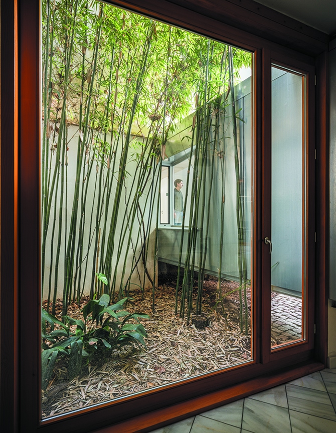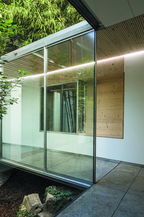 En seco, instalado en los vacíos de la preexistencia.