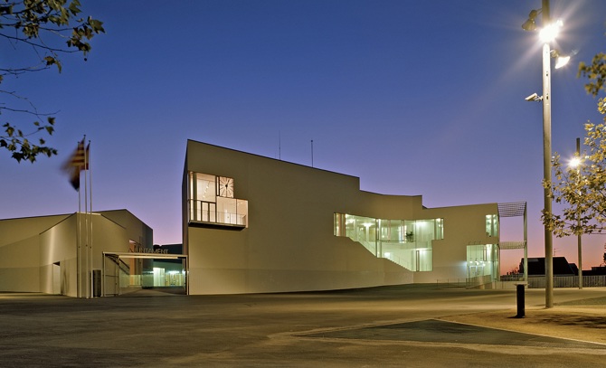 El proyecto apostó por la creación de una plaza generosa que quedó definida por una edificación continua que la abrazaba y que contenía todo el programa requerido. Situada sobre un terreno con mucha pendiente buscó la horizontalidad, consiguió evitar las rampas de acceso al aparcamiento subterráneo, que siempre rompen el plano generando zonas indefinidas y tenebrosas, y se plantaron el máximo número de plátanos posibles.