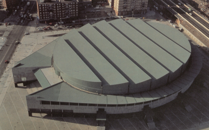 Estos tres puntos tienen el denominador común de las grandes dimensiones. Estamos hablando de un edificio capaz de albergar 12.500 espectadores, con unas dimensiones de 150 m de largo por 100 m de ancho. Un edificio simbólico y representativo al que podría ajustarse el concepto de catedral del deporte, en el sentido de lugar principal para una determinada actividad, como será en este caso la práctica y visión del baloncesto de alta competición.