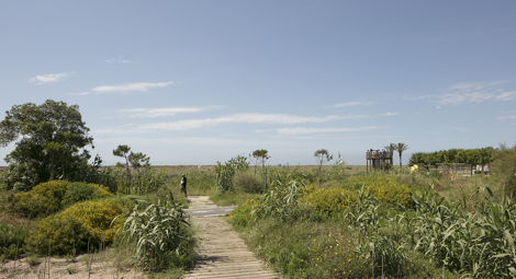 El proyecto ha establecido una referencia proyectual que permite comprender el lugar y mostrar sus características medioambientales, garantizando la supervivencia de los ecosistemas que lo forman y potenciando aquellos que le correspondería por su situación geográfica y por su pertenencia al entorno litoral. Hemos reinterpretado el territorio para adaptarlo a las nuevas directrices de usos, respetando y potenciando ecosistemas, con la voluntad de facilitar que el paisaje continúe su evolución en el tiempo.