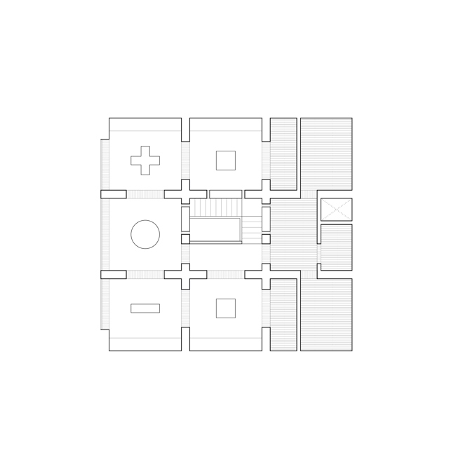 La planta cuadrada es dividida en una retícula de nueve espacios. Como resultado, una suma de 8 salas + 1, nueve cuadrados perfectos dotados de un carácter particular. La flexibilidad de esta disposición permite combinar indistintamente la exposición de colecciones, el desarrollo de eventos o la puntual venta privada. La secuencia de perspectivas cruzadas ensalza la condición museística del espacio a la vez que ofrece una presentación escenográfica y flexible de los productos en venta.