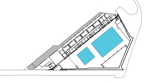 El proyecto puede considerarse un ejercicio de manipulación de un modelo académico establecido con la finalidad de poner un mínimo orden a un entorno desestructurado. El edificio acabó configurándose en un volumen que solo se entiende desde la preocupación por la definición de los vacíos circundantes y de la puesta en relieve de la entrada a la zona deportiva próxima.