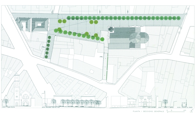 Antes de la actuación, la plaza estaba sometida a fuertes presiones de la circulación rodada y del estacionamiento de vehículos, que la habían reducido a una simple zona pavimentada, rodeada de viales y apenas definida por dos plantaciones lineales de plátanos. Ahora, en cambio, se impone la sensación de nitidez y amplitud del espacio.