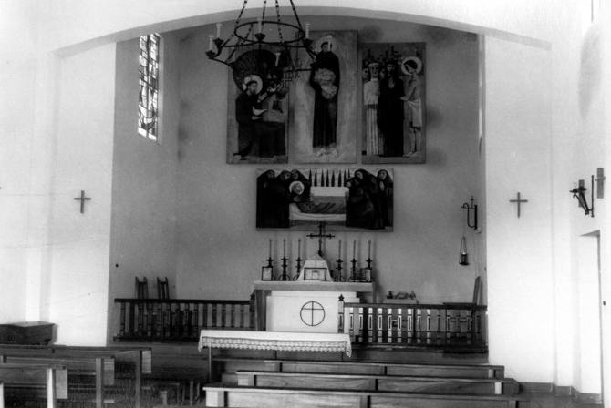 La Iglesia de San Francisco de Asís, situada en la parte más alta del pueblo, cuenta con murales cerámicos de Antonio Hernández Carpe y, al igual que la de San Rafael Arcángel, retablos creados por el artista Manuel Rivera que presiden sus presbiterios.