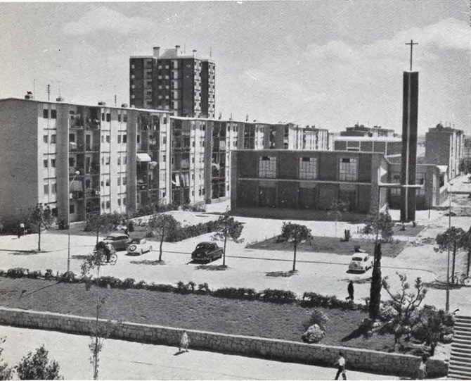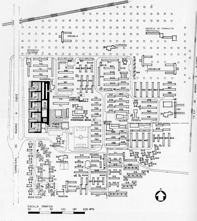 Un nutrido equipo de profesionales, compuesto por ocho arquitectos encabezados por Eugenio Casar –que junto con Julián Peña y Manuel Cortés firmó en 1958 el anteproyecto original–, ejecutó la urbanización y las distintas edificaciones, planteadas según los criterios funcionalistas que el movimiento moderno aplicó en la época a las grandes actuaciones de vivienda social.