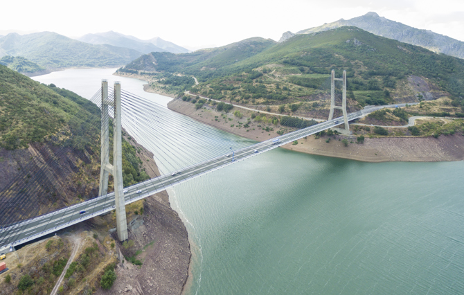 Puente Carlos Fernández Casado sobre el embalse de Barrios de Luna