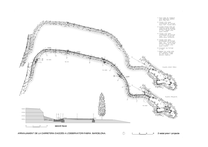 Se trata de la remodelación del tramo que enlaza con la carretera de Vallvidrera al Tibidabo, llegando hasta la puerta que cierra la finca del Observatorio Fabra. Fundamentalmente se pretende solucionar correctamente la evacuación de aguas, con la realización de una cuneta de recogida y una nueva capa de rodadura para minimizar el efecto de erosión que se produce con las lluvias sobre los límites de la calzada y los taludes adyacentes.
