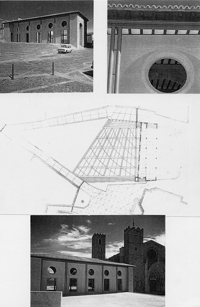 La Lonja, iniciada en el siglo XIV, está situada junto a la basílica de Santa María en el núcleo amurallado de Castelló d’Empúries. Es un edificio de planta rectangular cuya fachada a la plaza de la basílica estaba abierta con cinco grandes arcadas, y un muro medianero a la plaza posterior que presentaba defectos estructurales y partes ruinosas.