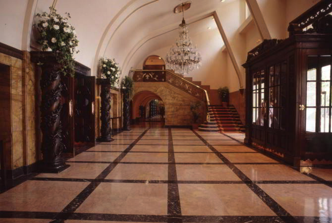 La reforma del vestíbulo se relaciona con la modificación de la fachada: en el interior de los arcos se eliminó la antigua vidriera para abrir huecos que aportan mayor luminosidad a aquel espacio, rectificando el trazado de la bóveda de escayola, que ahora se abre hacia los nuevos ventanales.