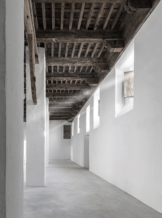 La intervención se realiza en una de las alas originales con artesonado de madera, posteriormente reforzado para ser usado como almacén de trigo, y en la nave anexa, que se encontraba derruida. Respeta al máximo la existente y se trata de hacer una recuperación del espacio y adecuación a sala de exposiciones de bajo coste. Se incorpora una escalera nueva de acceso a la planta alta.