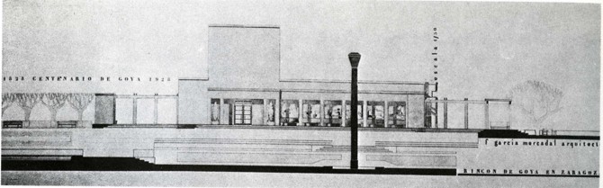 El monumento a Goya, que, en principio, debiera haber constituido un pedestal que realzara la figura del pintor custodiada por un grupo representativo de los diversos estamentos del pueblo aragonés, se convierte en un pequeño pabellón abierto a un jardín. En él habrá una biblioteca con libros hablando de Goya –el hombre y el pintor– y un pequeño museo que exhibirá reproducciones de sus obras más importantes. Lo espiritual ha sustituido al formalismo representativo. La sencillez a la retórica. Este monumento, como era posible de prever, no gusta en Zaragoza. Hay unanimidad en la repulsa. Los periódicos bromean sobre él. Uno de ellos asegura: “No hay motivo de disgusto. El monumento es realmente interesante. Ocurre solo que se halla aún sin desembalar”.