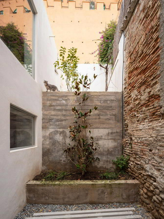 En el corazón del Barrio del Realejo, se rehabilita una casa entre medianeras en la colina del Mauror, al pie de la Alhambra. Orientada al suroeste, la casa se acomoda a la topografía. Los antiguos muros de contención permiten salvar un desnivel de diez metros y va creciendo a medida que asciende la ladera.