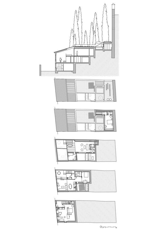 Se construye sobre lo existente, destruyendo lo menos posible y construyendo lo menos posible. Los muros de contención primitivos se respetan, reforzándolos tan solo en la planta baja, por las malas condiciones y la exigencia estructural del mismo.