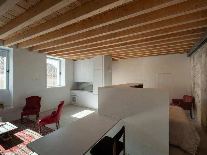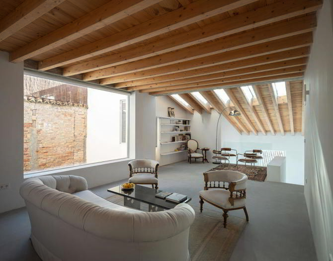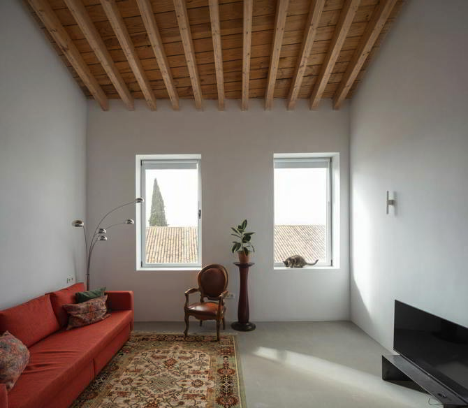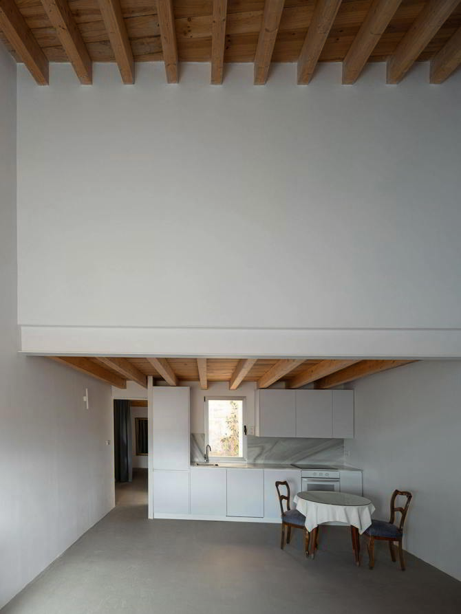 Una rehabilitación guiada por un criterio de racionalidad y economía de medios que acepta la belleza imperfecta de lo existente y no repara en reutilizar materiales. Así ocurre con las vigas de madera que se convierten en bancos del jardín, con la pieza de mármol desechada en cantera que empotrada en el muro sirve de mesa y bebedero de pájaros.