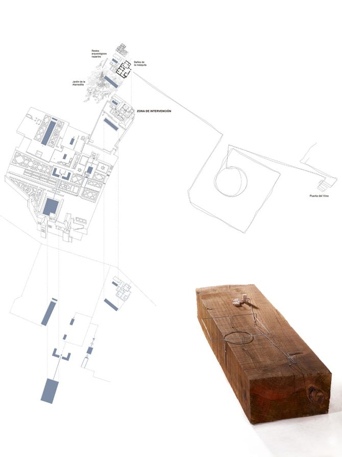La intervención respeta la estructura antigua del Baño islámico mediante una serie de actuaciones que conjugan la rehabilitación arquitectónica y la museografía a través de ciertos acontecimientos de la vida de este lugar y su relación con la arquitectura y un jardín arqueológico medieval. La recuperación está basada en la interpretación diacrónica de la historia de este ámbito y sus transformaciones a través del valor de las preexistencias arquitectónicas, los objetos domésticos y su dimensión artística e interpretativa.