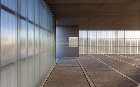 Se trata de un conjunto de grandes dimensiones que alberga mosaicos de gran valor, parcialmente enterrado debajo de la iglesia parroquial de San Pedro Apóstol y del cementerio. La intervención en la villa se ha planteado por fases, a partir de una estrategia proyectual que consiste en la construcción de una pasarela que genera el recorrido por el interior de la villa, a la que se pueden ir conectando diferentes pabellones, construidos de forma separada, protegiendo los mosaicos de manera independiente, evitando así la construcción de la gran nave cubriendo toda la villa que, además de ser poco sostenible, anula por completo la presencia de la villa en el paisaje.