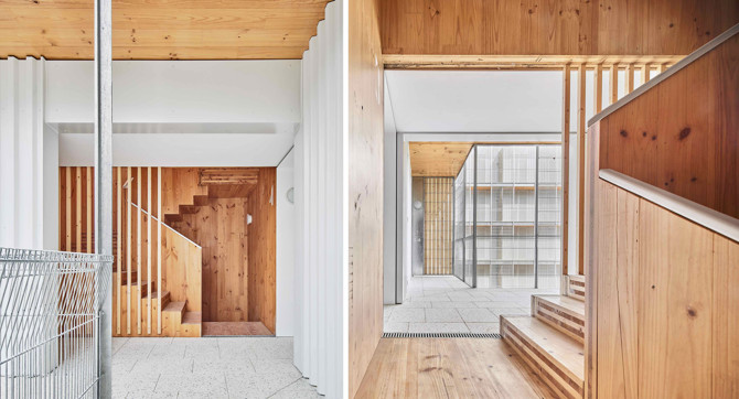 El diseño de una matriz de habitaciones que se comunican entre sí y el uso de la madera en favor de las posibilidades de industrialización del edificio, junto a la mejora de la calidad de la construcción y la notable reducción de sus plazos de ejecución y las emisiones de CO2, son los ejes de este nuevo edificio de viviendas.