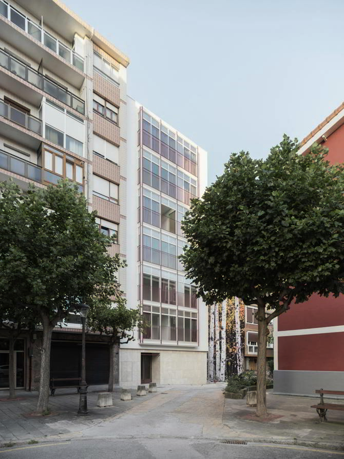 Sestao es una localidad ubicada en la margen izquierda próxima a la desembocadura de la ría de Bilbao: un pueblo marcado por la presencia de industria pesada, astillero La Naval y la actual acería de Arcelor Mittal heredera de Altos Hornos de Vizcaya. En ese contexto está el edificio de las 15 viviendas sociales.