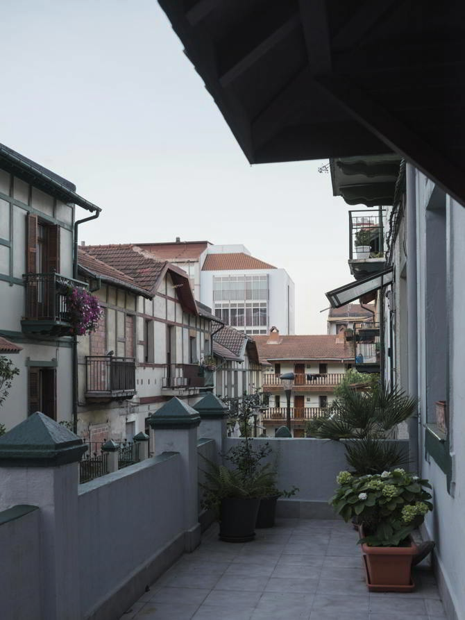 Una parcela pequeña medianera a un bloque de ocho alturas, con frente a la calle en su alienación suroeste, frente opuesto al interior de manzana y tercera fachada a un paso peatonal de nueva creación para dar acceso al centro de manzana reurbanizado recuperado como espacio público. La parcela forma parte de la ladera urbana de fuerte pendiente que mira a la ría, de manera que entre sus fachadas opuestas hay dos plantas de diferencia.