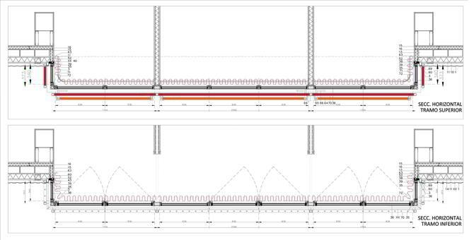 La modulación de las carpinterías coincide con las particiones interiores. Esto hace que el mirador funcione a modo de muro cortina en el frente de las estancias. O como un balcón. El alto grado de aperturas del que se dota al mirador quiere resolver la relación de la casa con el exterior. La casa se abre ampliamente a la visión panorámica del entorno. Las estancias están dimensionadas al mínimo normativo.
