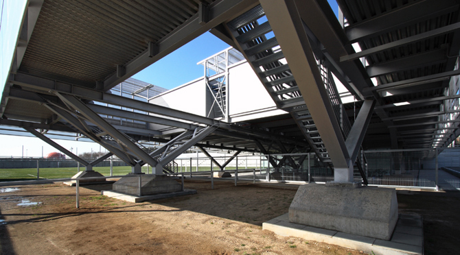 Un requisito fundamental del proyecto ha sido completar la fachada de la ciudad hacia la autopista, en una franja que aglutina diferentes equipamientos municipales (masía de Can Cabanyes, aparcamiento municipal, zonas deportivas, campo de fútbol Pere Gol) y que llega hasta la Ciudad del Baloncesto (centro comercial).