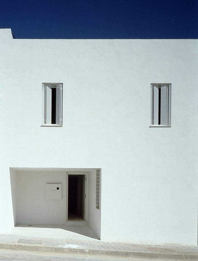 La arquitectura pertenece al lugar, que la condiciona y la singulariza. La trama urbana, la topografía y con ello la condición de mirador o la inserción en el paisaje, las condiciones lumínicas y el uso de los materiales están en el arranque de una idea que se ha materializado aquí en continuidad con la tradición popular andaluza en unas casas blancas de un pueblo blanco. A su vez se opta por un lenguaje contemporáneo, adaptándonos a la técnica y a la estética del momento actual, insertándonos en la historia desde el presente y rehusando apoyarnos en una relación de imitación folclórica con la arquitectura heredada.