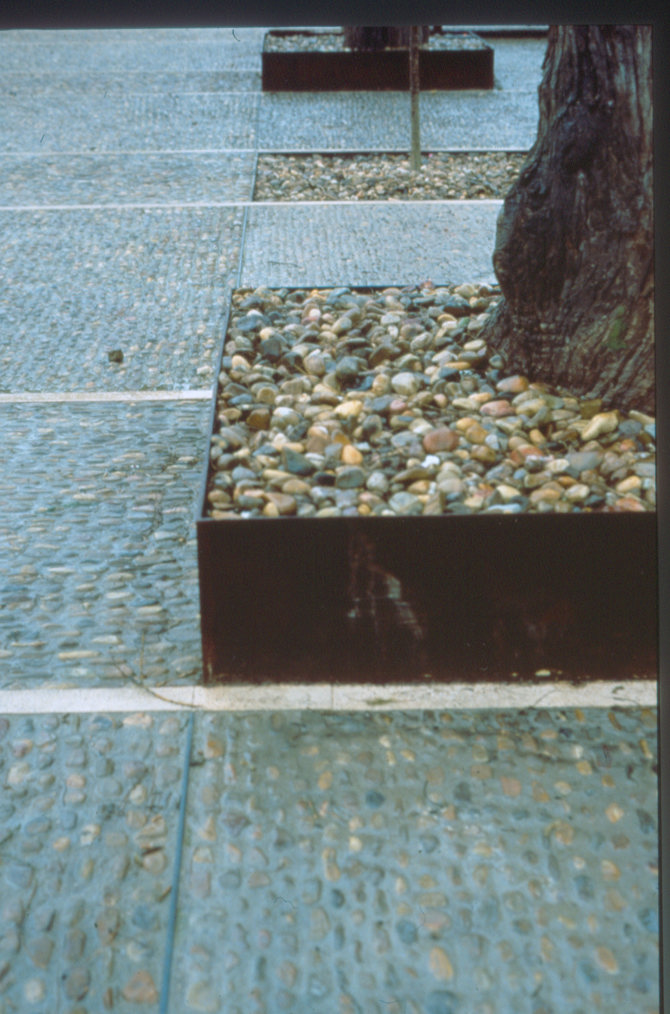 FOTOGRAFÍA DE DETALLE ALCORQUE ACERO CORTEN - Arroyo Pemjean Arquitectos -
